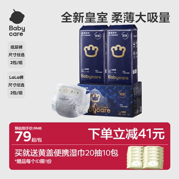 【109/2包,贈纯水便携湿巾20抽*10】,babycare纸尿裤皇室柔婴儿专用尿不湿新生狮子王国拉拉裤尿片裤子