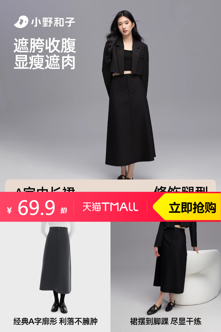 【叠加礼金 券后55.2】小野和子黑色西装半身裙长款,藏肉收腹,重塑腰臀曲线修饰腿型,于步履间尽显优雅与温暖质感~