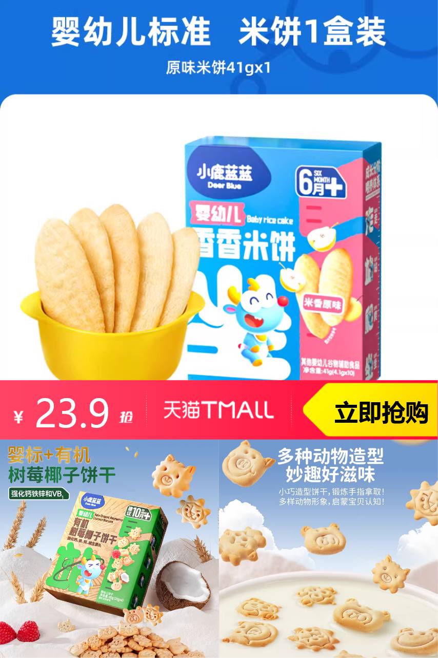 【原价36.9—店铺优惠13—88VIP95折1.2—淘金币0.36=到手价22.34,5包,凑单满200—25更划算到手19元左右】小鹿蓝蓝饼干组合,口感细腻,营养安全,科学配比,易煮易熟。不添加人工色素,无添加剂,低脂肪,低钠配方,Q弹爽滑,麦香浓郁~