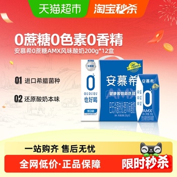 手机打开产品!叠50-5惊喜红包!下拉详情页淘宝秒杀进去拍到手31.9!1盒2.65!伊利安慕希AMX原味0蔗糖酸奶200g*12盒