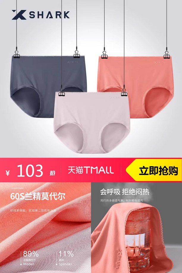 ⭕鲨鱼莫代尔芦荟抑菌高腰大码女士内裤3条