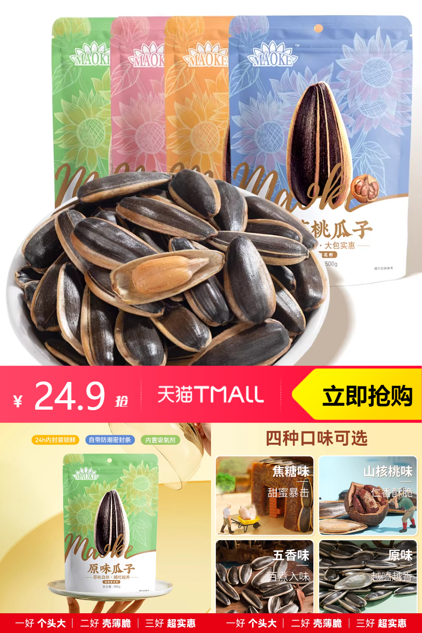 您的位置: 选单 > 美食 > 洽洽毛嗑瓜子500g*3袋