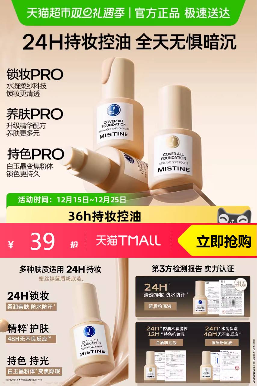 【可抵扣6.22元淘金币,叠160-20惊喜券,88vipd到手27.25】Mistine小蓝盾拍开就是那种自带磨皮的奶油肌效果脸上的毛孔、黑眼圈、红黑痘印瞬间都隐形掉!!