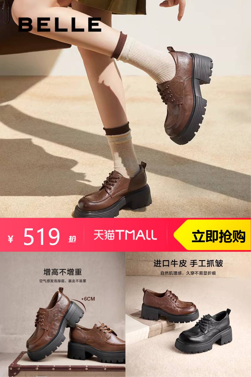 百丽 百丽女鞋子厚底牛津鞋春季新款真皮黑色 669元减150 商品纠错