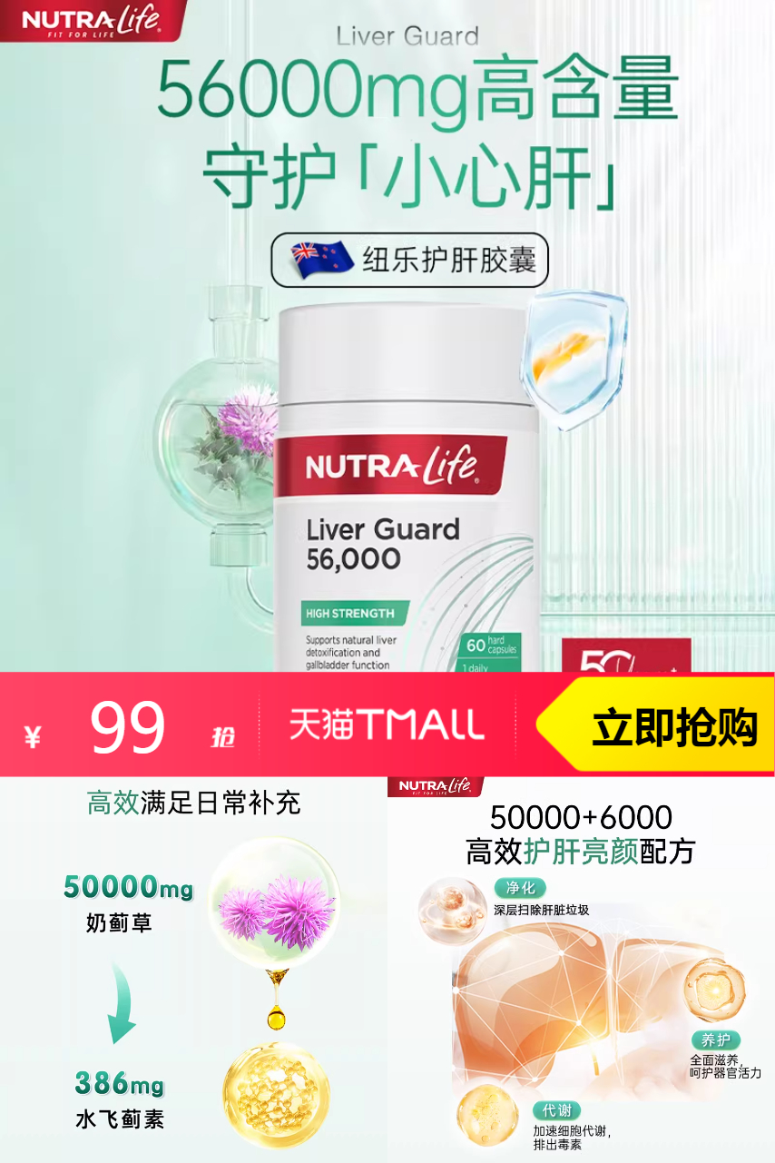 【立减748元 限时红包减4 元 抵扣1.5元。到手 93.5】Nutralife奶蓟草胶囊,护肝好帮手!每日一补,肝脏更健康。