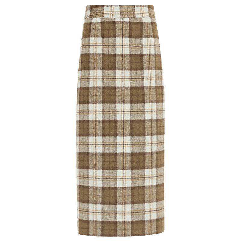 推荐:复古格纹毛呢直筒半身裙