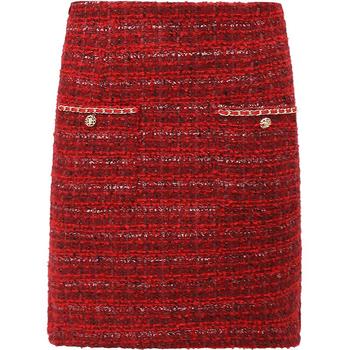 COCO BELLA的这款新年红轻奢小香风粗花呢短裙,采用转运红花呢面料,无论是从颜色还是质地都充满了节日的气息。高腰设计,的修饰身材比例,让穿着更加显瘦。短裙的设计简洁大方,适合各种场合穿着,无论是聚会、约会还是日常穿搭都非常合适。