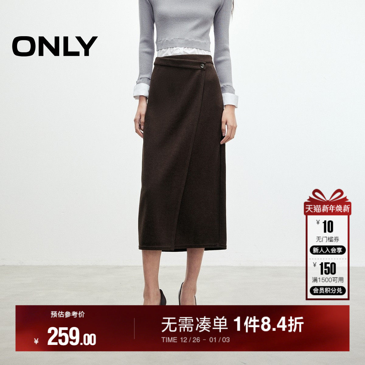 ONLY精选冬季新款时尚半身裙,采用不规则斜搭腰头设计,宽松舒适,适合各种身材穿着,让你在冬日里也能感受到时尚的气息。