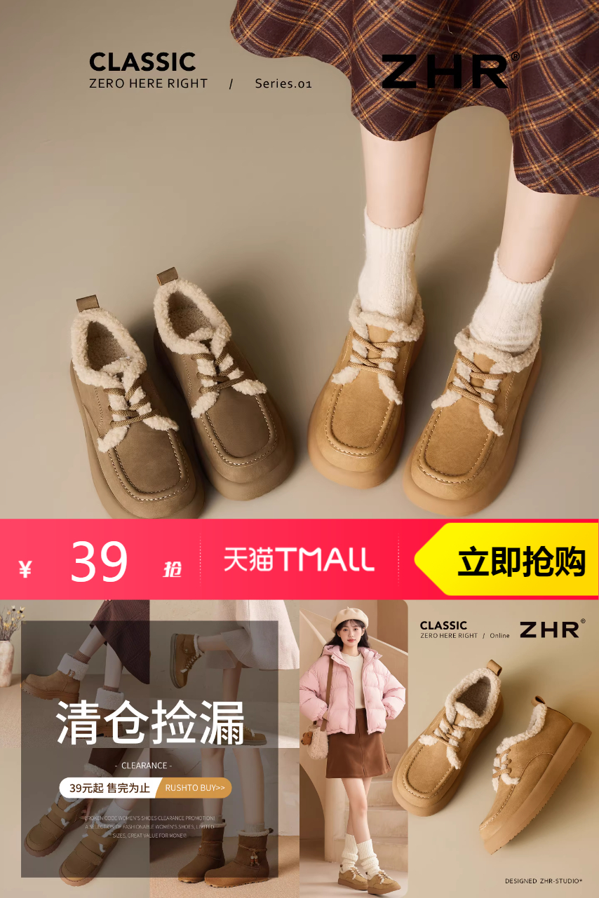 【淘金币抵扣3元,到手价36元起】清仓39元起!ZHR保暖毛毛靴短靴,超值清仓!舒适加绒,保暖必备!