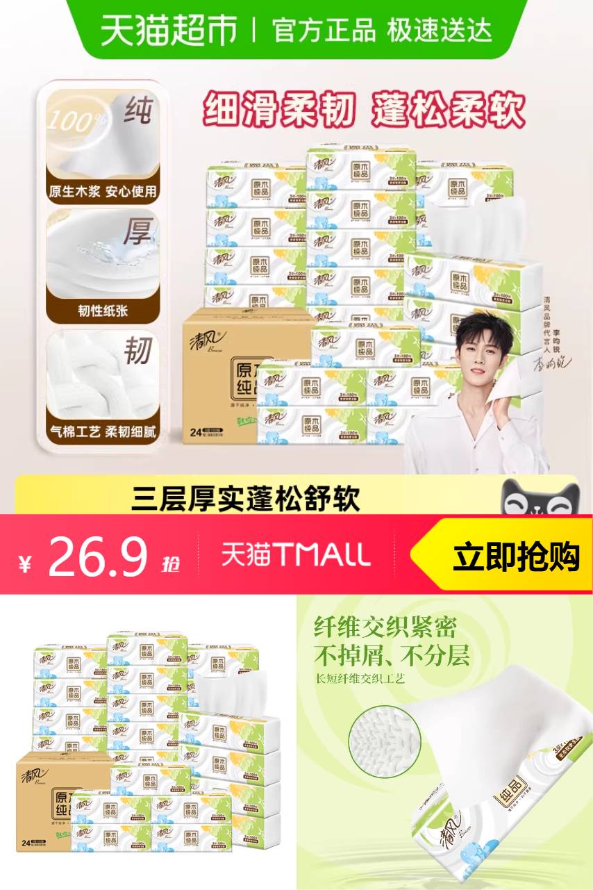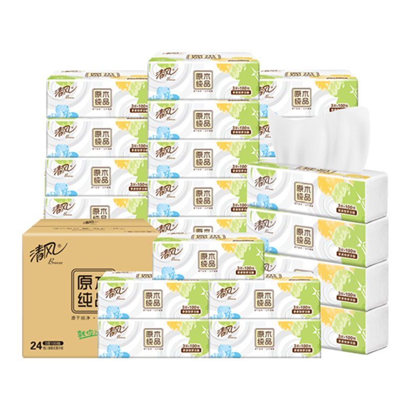 推荐:清风抽纸3层100抽24包卫生纸巾
