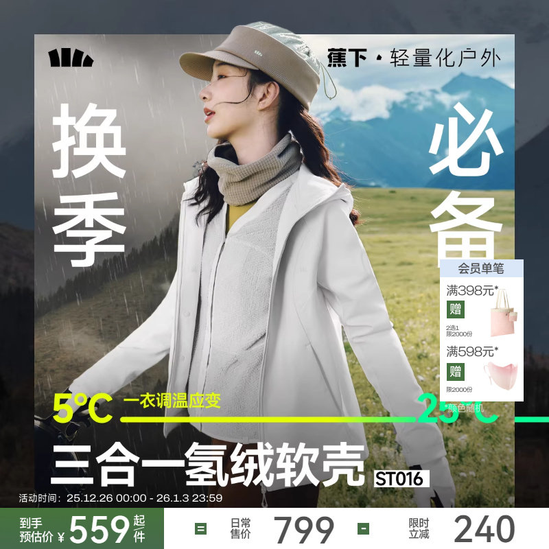 您的位置: 选单 > 女装 > 蕉下软壳三合一外套女秋