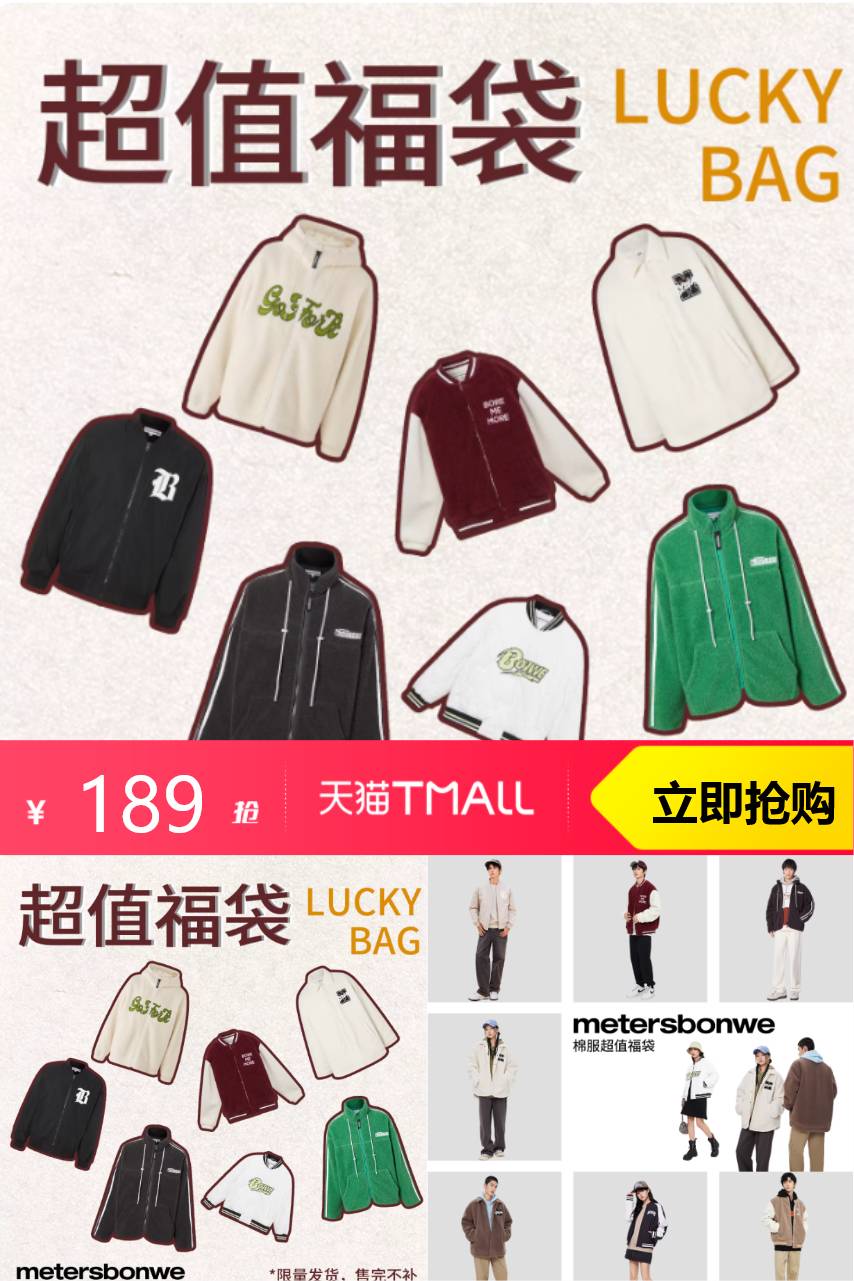 【拍2立减48+店铺券163】美特斯邦威为您揭晓答案!【拍2件】限时推出超值福袋——全新设计的棉服外套,舒适与风度并存!