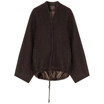 推荐:蝙蝠袖斗篷亮葱仿水波纹毛呢外套