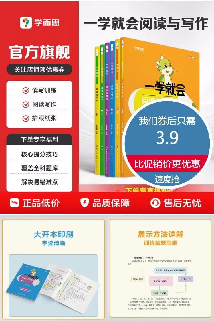 【淘金币抵扣更优惠】学而思一学就会阅读与写作 ,配套视频,阅读与写作双向结合,综合训练孩子读写能力,护眼纸张,大开本印刷,字迹清晰!小学必备语文读写能力分级训练!