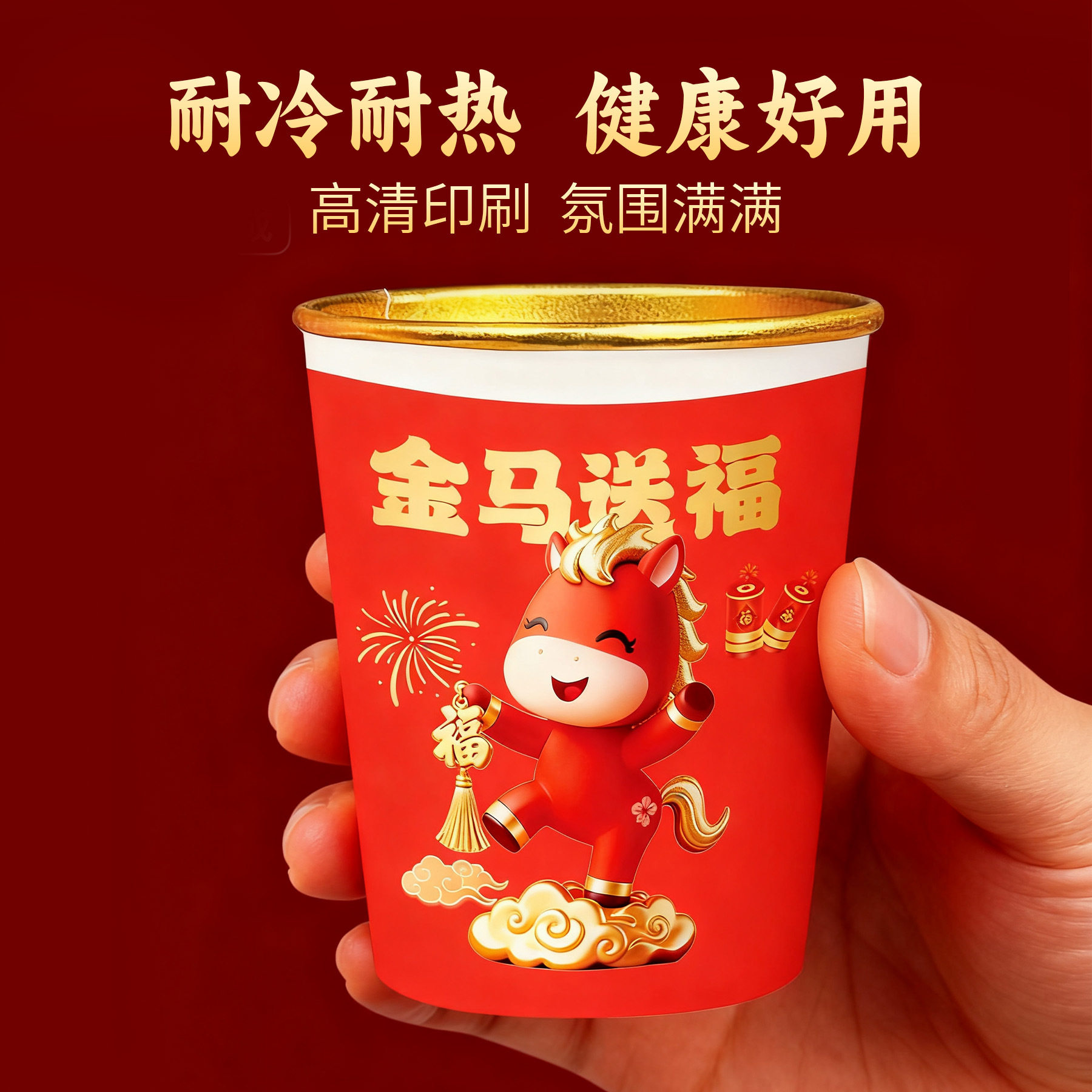 新年新气象,金箔纸杯助您欢庆,红杯映喜庆,金箔光耀眼,马年新杯,加厚耐用更安全,家用首.选,红金搭配美观又实用,瞬间添彩节日喜庆!!!