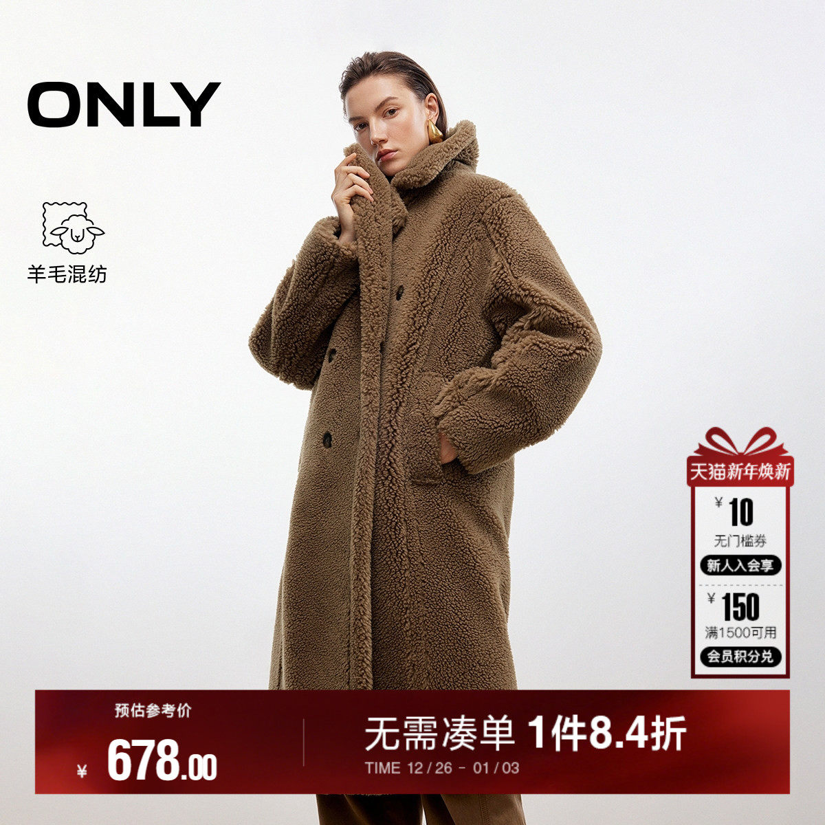 您的位置: 选单 > 女装 > ONLY双排扣泰迪毛毛呢大衣