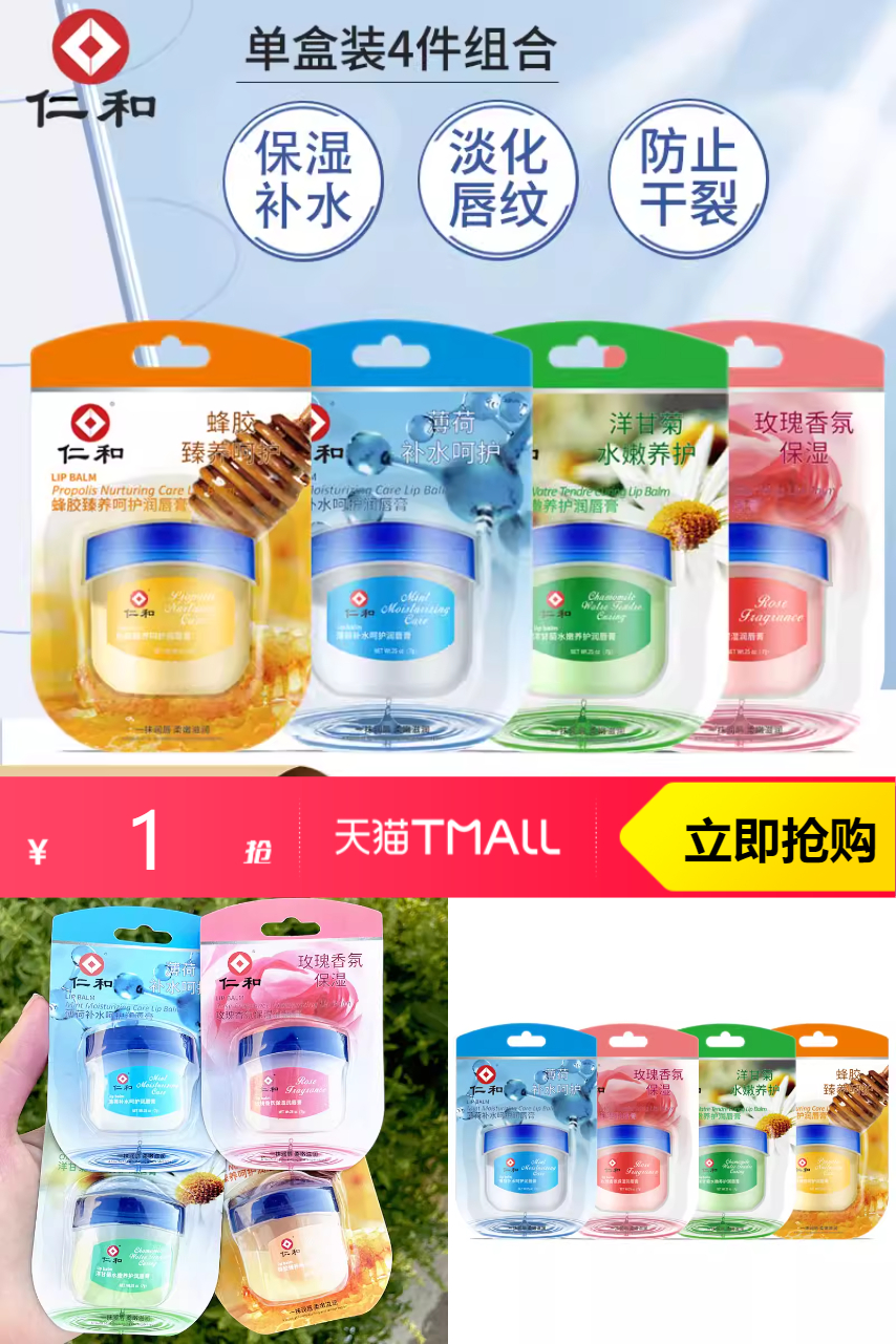【天降到手1元】仁和润唇膏,1个解决唇部干裂烦恼!滋润不油腻,成分安心,持久保湿,轻松拥有水润嘟嘟唇~