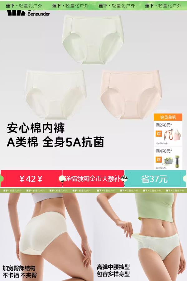 【超级立减34元,领3元优惠券,可抵用淘金币,88VIP享消费券叠加】安心棉内裤,全身抗菌,梳去杂质,低敏少刺激,更亲肤,更透气!