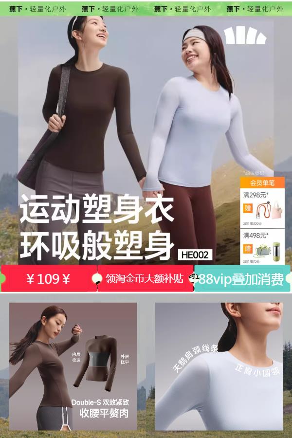 【超级立减50元,领40元优惠券,下拉详情领大额淘金币,88VIP可抵用消费券】运动塑身衣,环吸般塑身,双效紧致,收腰平赘肉,正肩小圆领,天鹅肩颈线条!