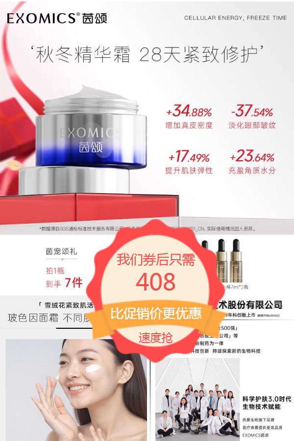 【领290元优惠券,到手408元】雪绒花玻色因紧致肌活秋冬精华霜,28天紧致修护,舒缓修护,丰盈嘭弹!【退货宝】