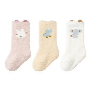 婴儿袜子秋冬宝宝加绒加厚保暖半边绒袜新生儿无骨袜男女童中筒袜