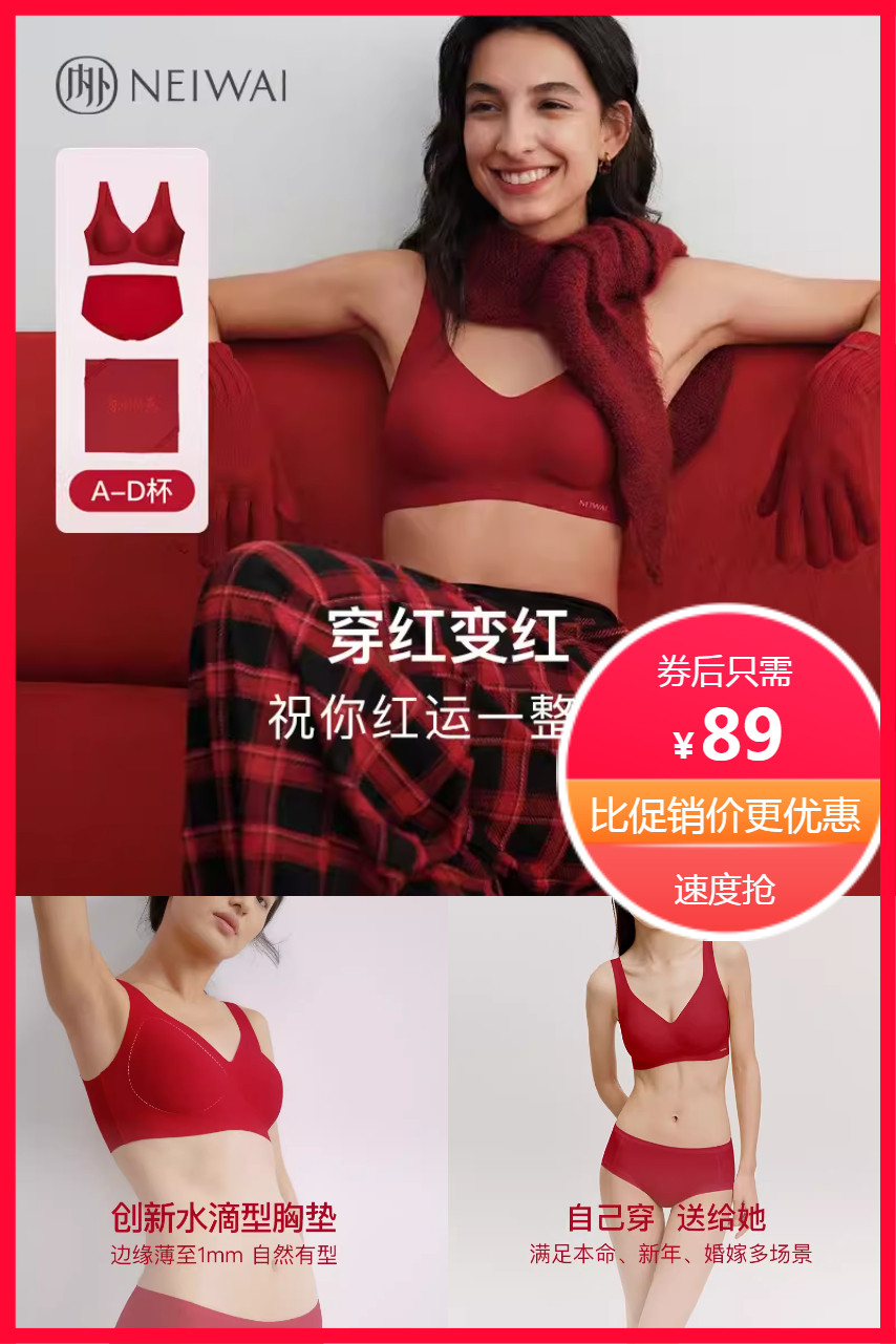 【官方立减24元,淘金币到手85.02元】内外红盒经典内衣套装礼盒,结婚 + 本命年 + 送礼!经典云朵面料,高弹无尺码文胸,创新水滴形胸垫,亦有型,内裤无缝贴合工艺,不易卷边,没有存在感,精致包装!贴心设计!红盒寓意吉祥!!适合各种重要场合!!
