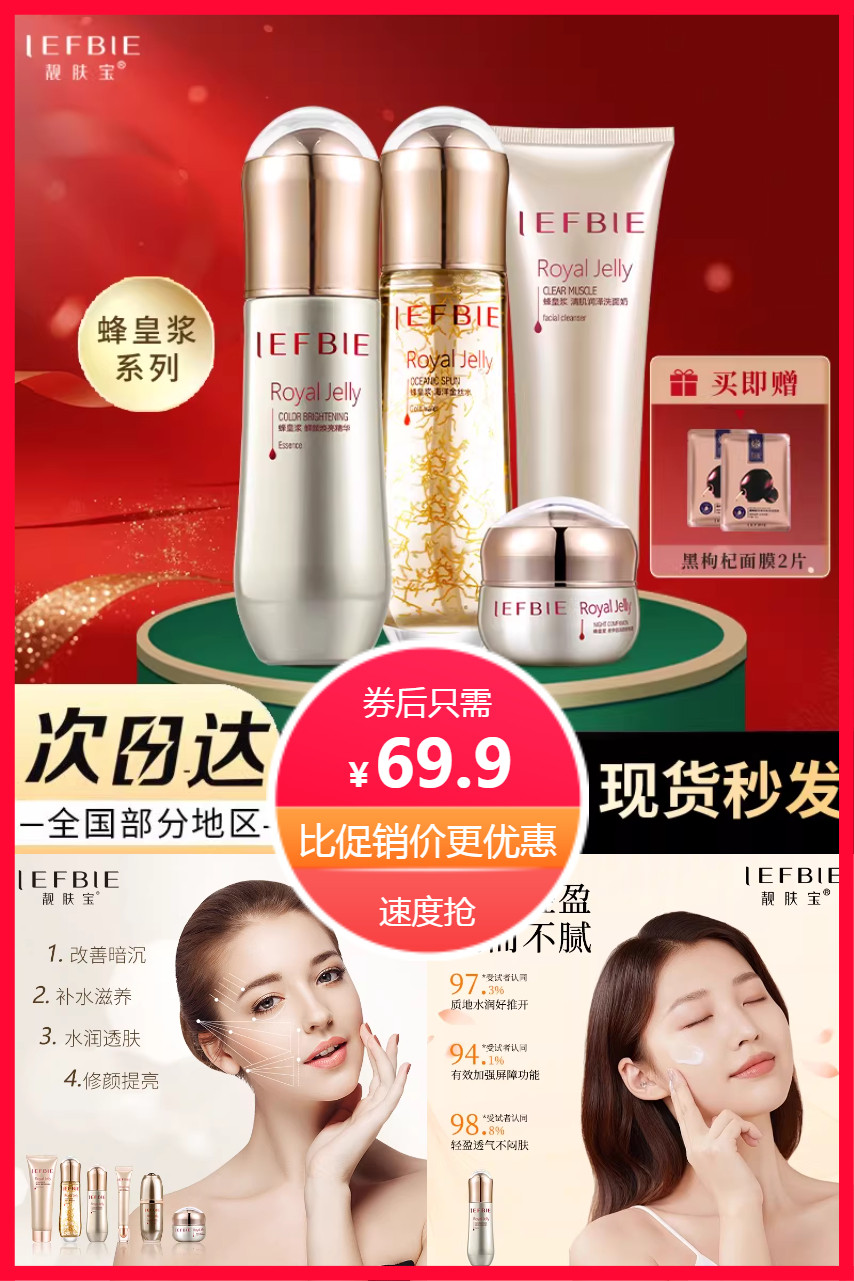 【金币约58元】靓肤宝蜂皇浆精华水乳套装,深层补水+提亮肤色双效协同,清爽不黏腻,敏感肌也安心使用~官方旗舰店直发,买即享蜂皇浆精华+保湿水+润泽乳,性价比拉满!