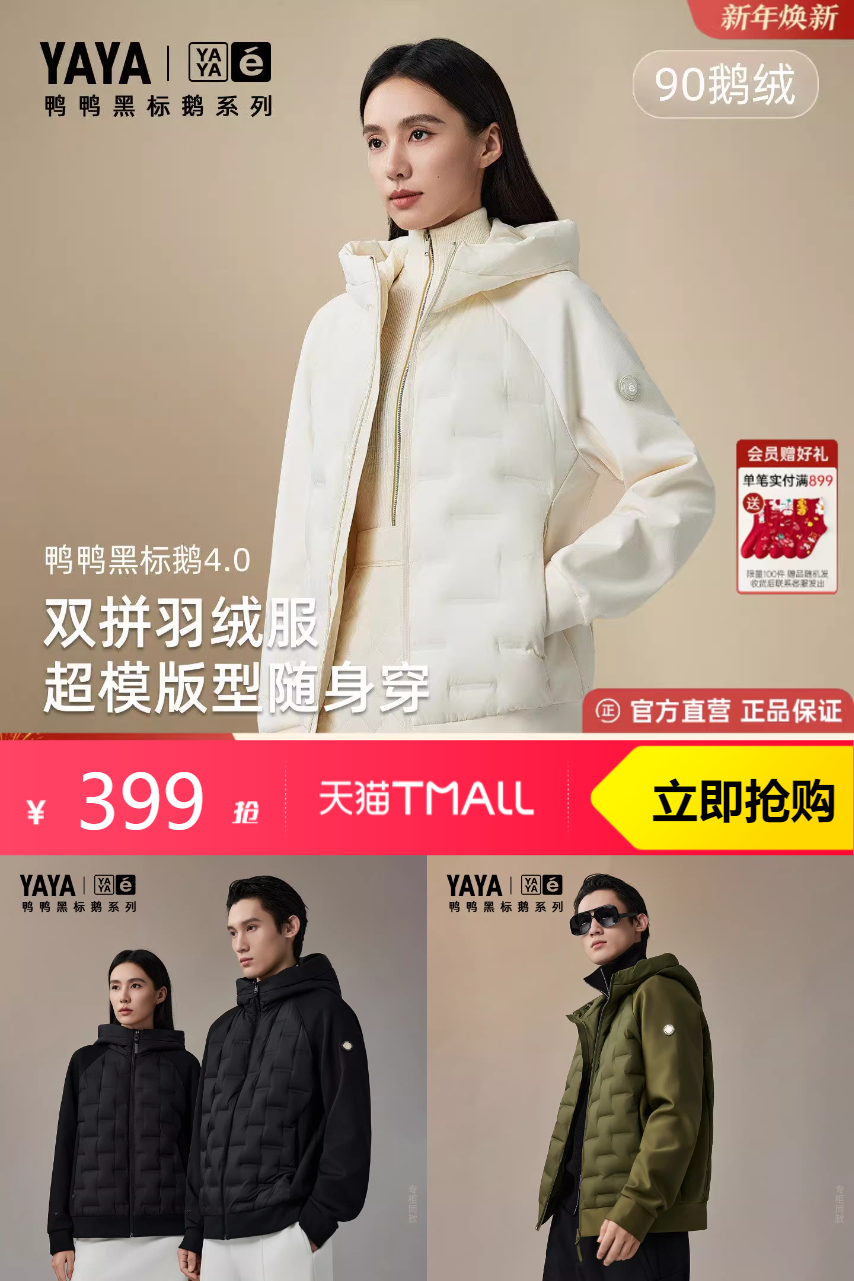 【超级立减62,满511减50,淘金币抵扣20,礼金79.8,满550减45消费券减30.75,到手价268.45】鸭鸭新款羽绒服男女中短款显瘦连帽,潮流款式,品质优选~