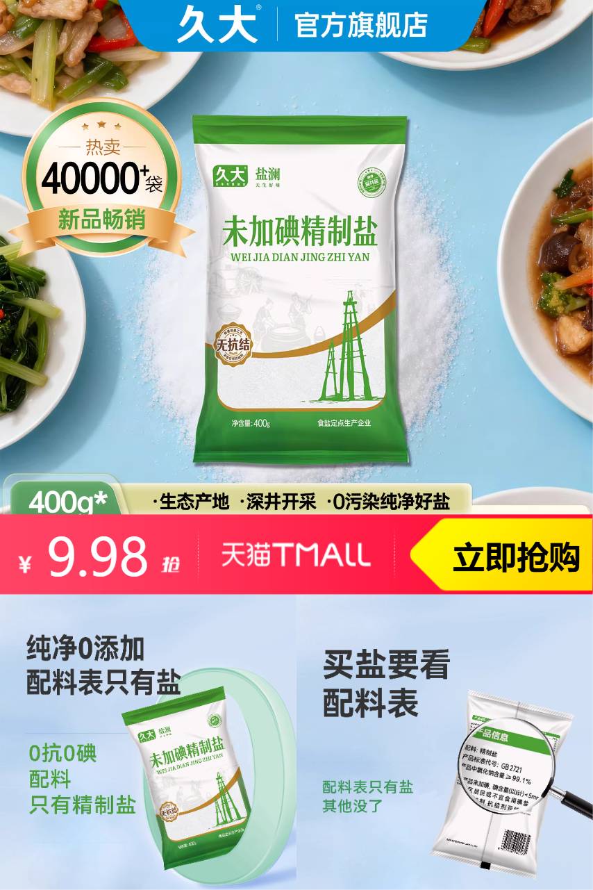 久大自贡井盐未加碘400g*7袋 1元减0.53 商品纠错
