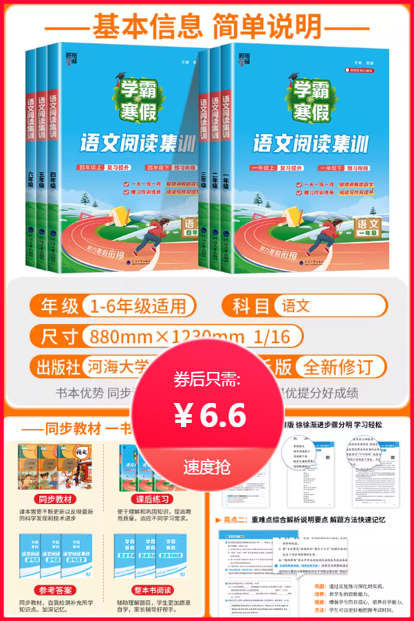 江苏地区专项适配!覆盖人教版、苏教版,寒假语文阅读+数学计算双维集训,夯实基础稳提升~单册低价承载系统训练,预习复习两不误,性价比之选!寒假弯道超车,来集训赢在起跑线!语数双学科 攻克不畏难。