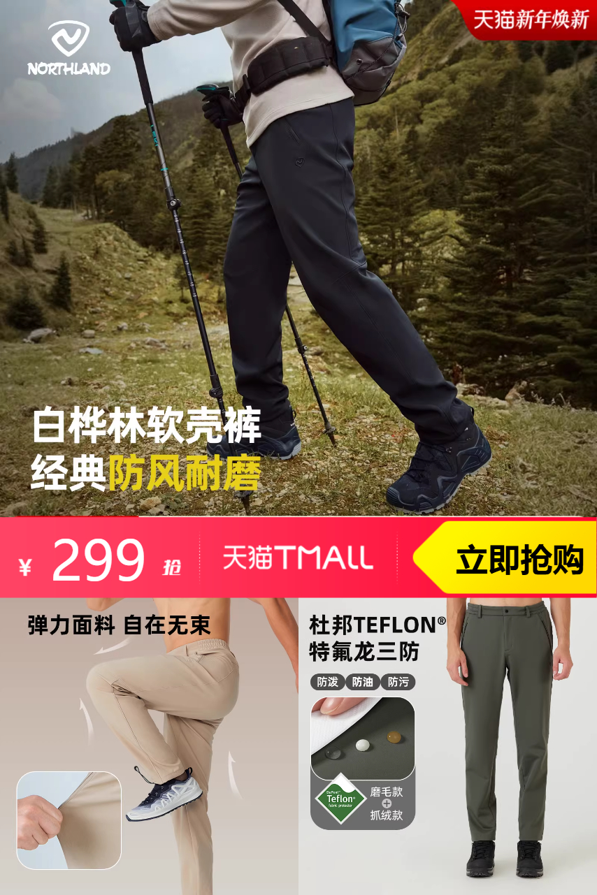 ⭕诺诗兰软壳裤加绒男秋冬保暖户外徒步
