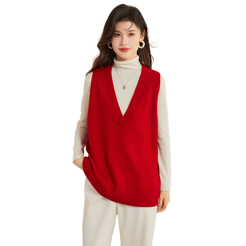 【金菊旗舰店】精选优质羊毛材质,轻盈舒适不紧绷。这款背心采用宽松版型设计,适合多种身材穿着。其V领设计不仅美观大方,还能展现女性优雅气质。中长款的设计既可御寒又不失时尚感。无论是日常穿搭还是休闲聚会,都能轻松驾驭。金菊品牌以高品质、高性价比著称,此款产品更是不容错过。