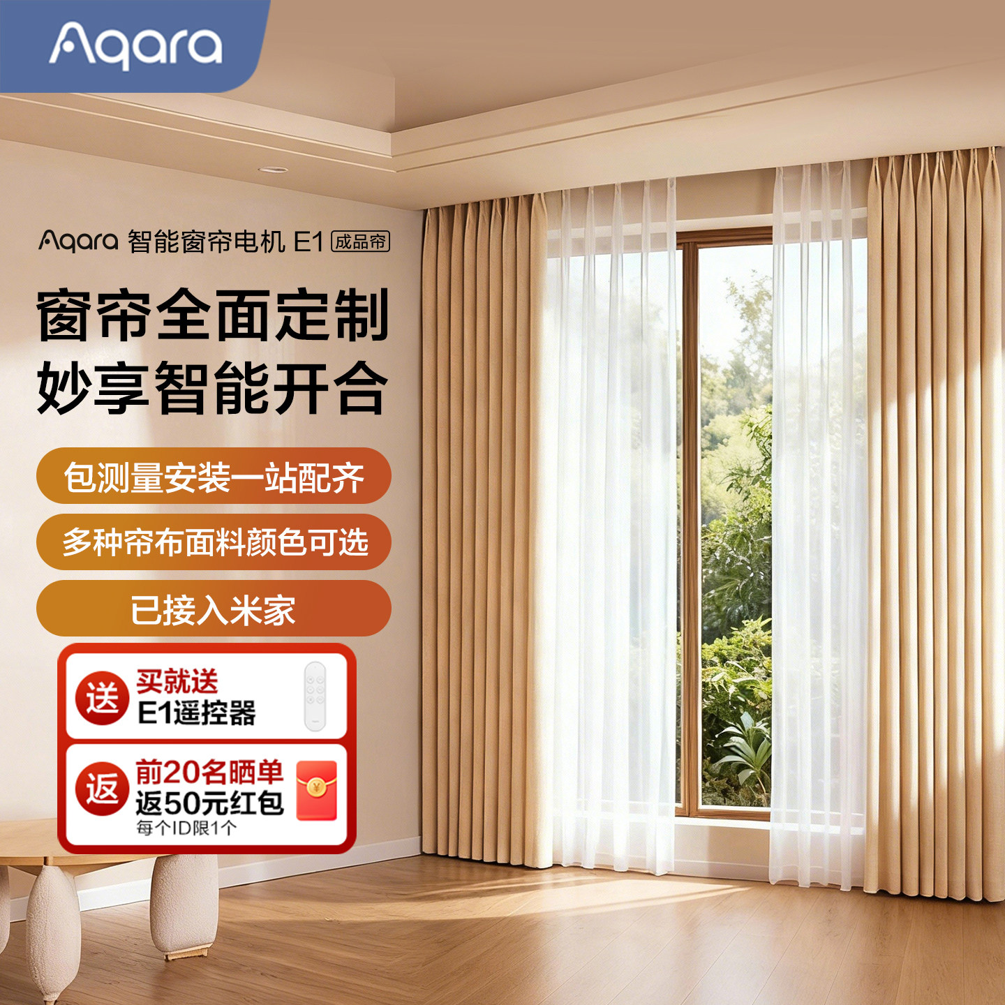 ⭕Aqara智能窗帘E1成品帘套装