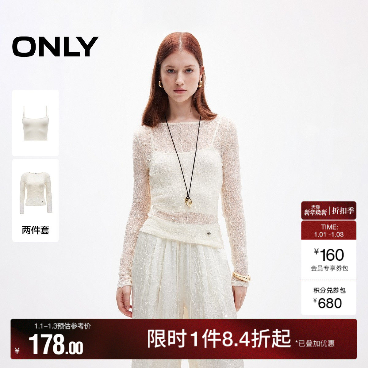ONLY官方奥莱旗舰店推出的2025年新款蕾丝修身长袖吊带套装T恤,采用柔软舒适的面料,展现女性的性感与优雅。无论是休闲还是正式场合都能轻松驾驭,让你成为聚会中的焦点。