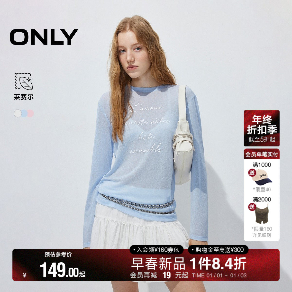 推荐:ONLY透肤微廓形剪裁顺滑垂坠T恤
