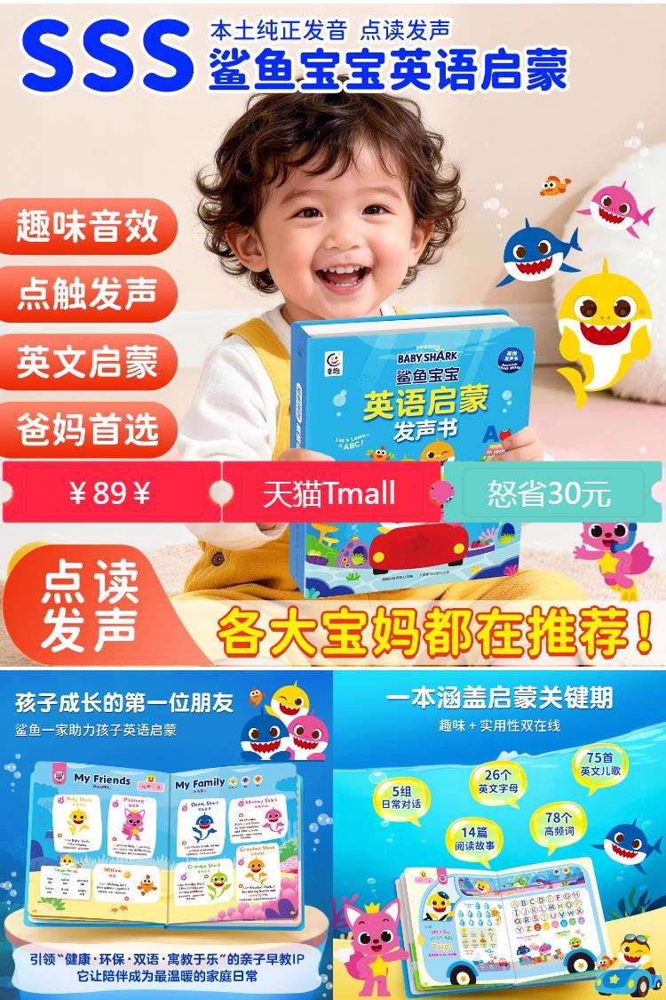 0-9岁必备,快乐成长无界限。有声互动,激发兴趣。启蒙益智,快乐学习。鲨鱼宝书,宝宝英语启蒙首选
