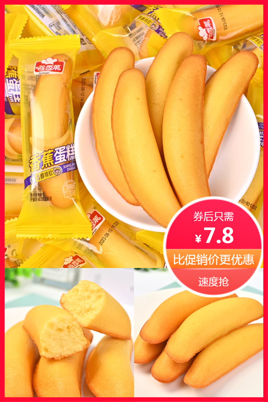 娃吵着要吃的早餐神器,香蕉面包,独立包装刚刚好,口感软糯,0反式脂肪酸,蕉香浓郁,松软香甜,好吃不贵,天然食材,健康美味,独特口感 ,让你回味无穷,送礼自用两相宜,速抢