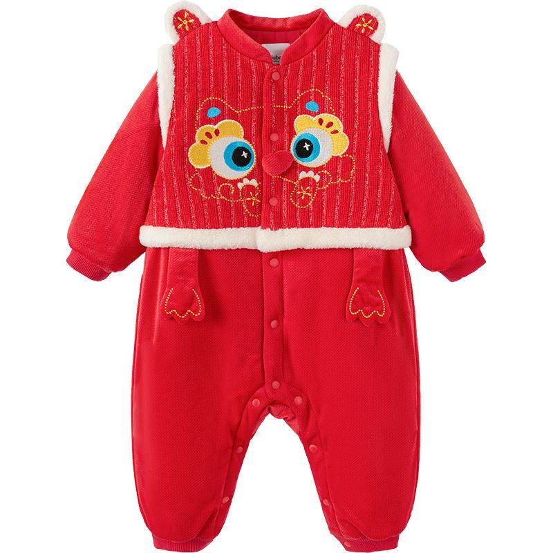巴拉巴拉童装新款儿童连体衣,采用面料,保暖舒适。复古国风设计,年兽刺绣,让宝宝穿上就成为全场焦点。适合不同年龄段的孩子穿着,是宝宝新年拜年的理想选择。