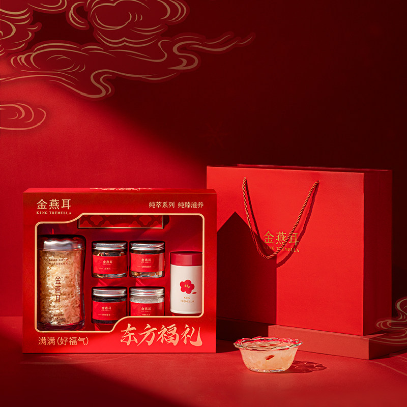 【商超活动都要399~现会员到手193】【金燕耳大牌70g+送5件到手6件装年货礼盒】质感透亮礼盒送礼更显品质送亲戚送长辈送朋友营养健康好礼有面,含专用焖烧杯,定制量勺,和生态有机本草银耳,营养价值超越野生银耳,滋补中草药培养营养升级。破壁低温烘干更易吸收。