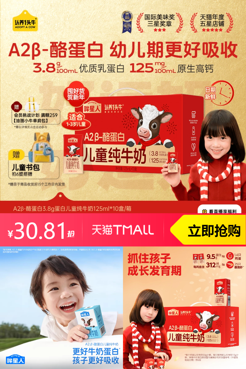 【原价49.9-立减15.11-淘金币3.98=30.81】【红色礼盒】认养一头牛A2纯牛奶1箱,营养满满新年礼,儿童成长好伙伴,健康礼盒,天然A2奶,健康快乐每一天。