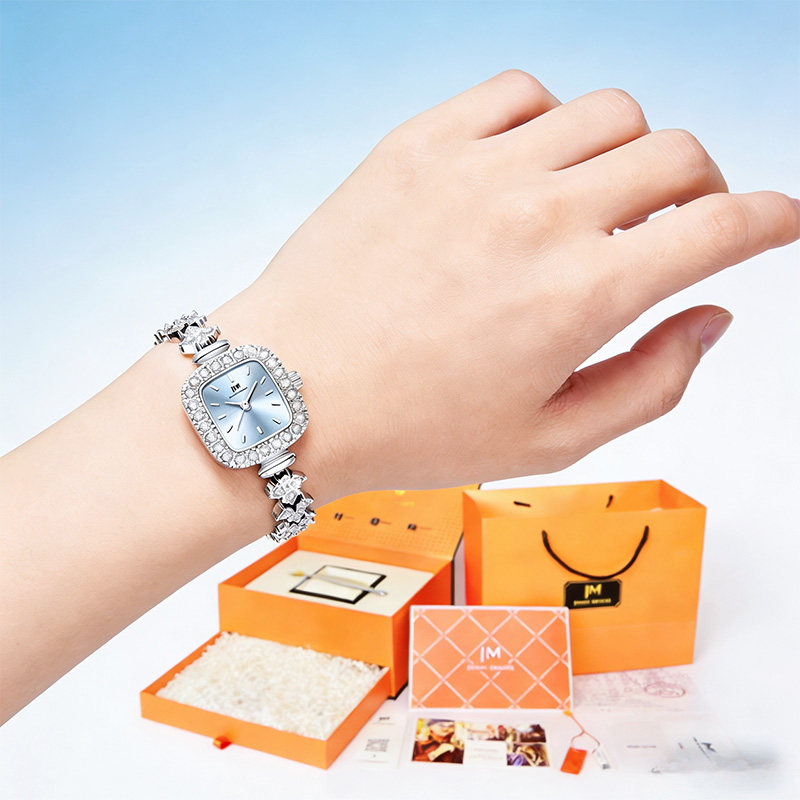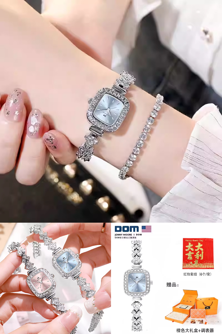 【520礼物DOM联名JM轻奢ins腕表礼盒款+送价值大礼盒+调表器】 坚守139道生产工序 轻奢ins风满钻女表时尚的设计,搭配任何衣服都能成为焦点。无论是日常出行还是聚会,男女款可选戴上它,气质直接拉满。时尚又百搭,赶紧冲,让你的手腕也能美出新高度!