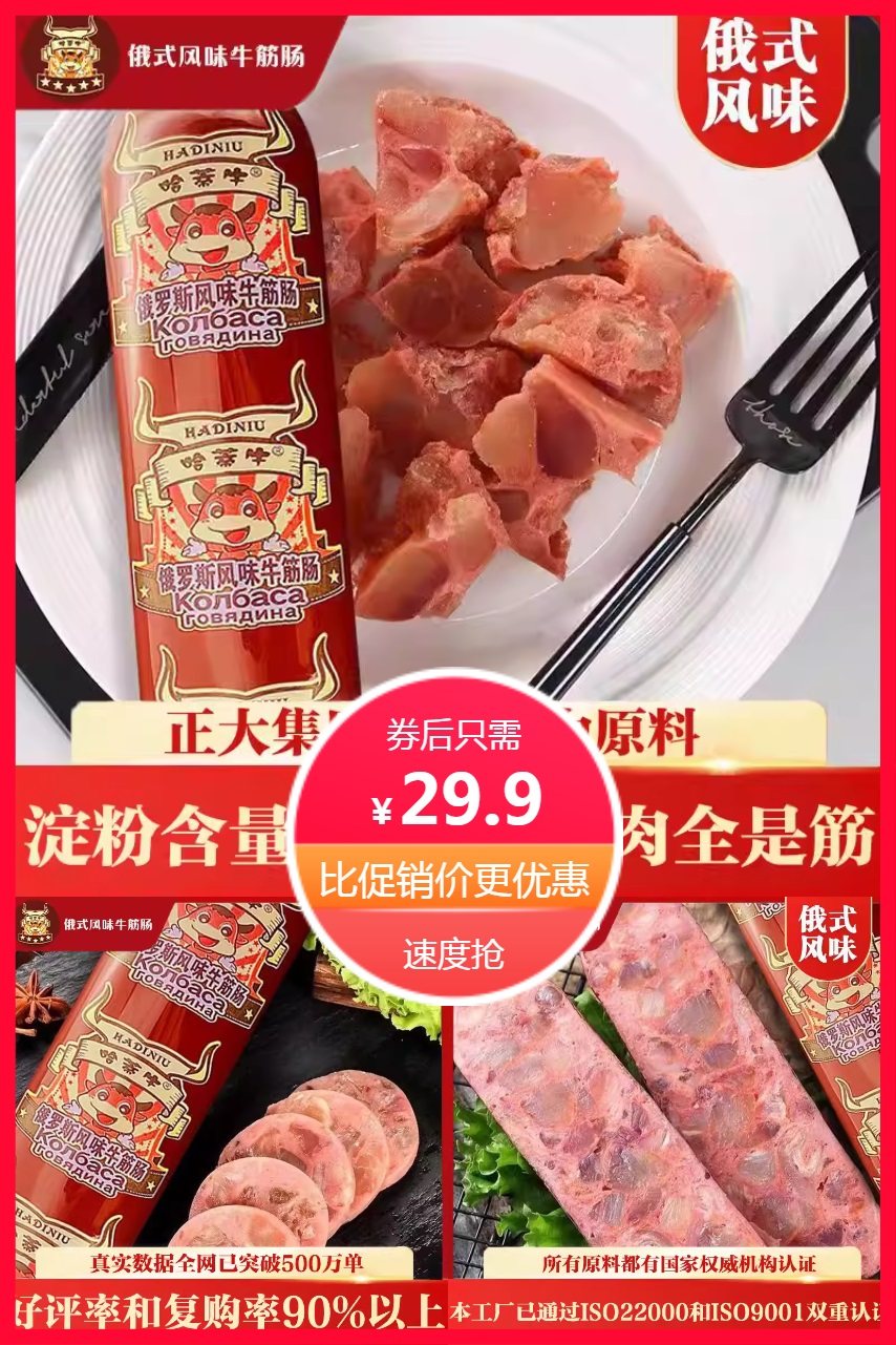 ⭕哈蒂牛俄罗斯风味牛筋肠180g*10大根