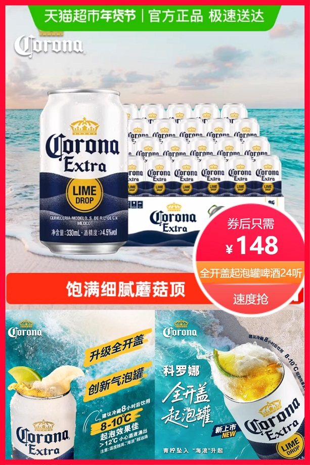 推荐:123元科罗娜开盖啤酒起泡罐24听