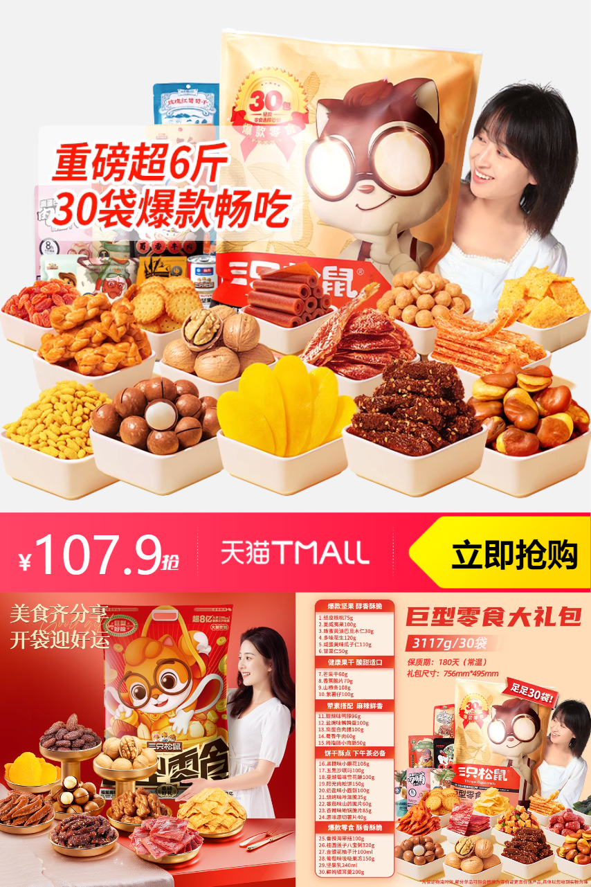 推荐:三只松鼠巨型零食大礼包30袋3356g