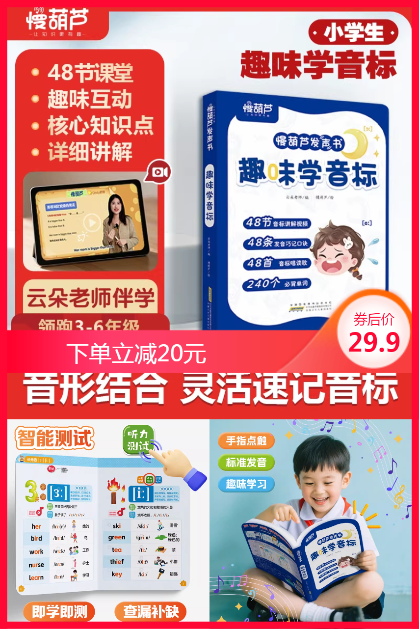 ⭕【慢葫芦】一键熏听的正版音标发声书