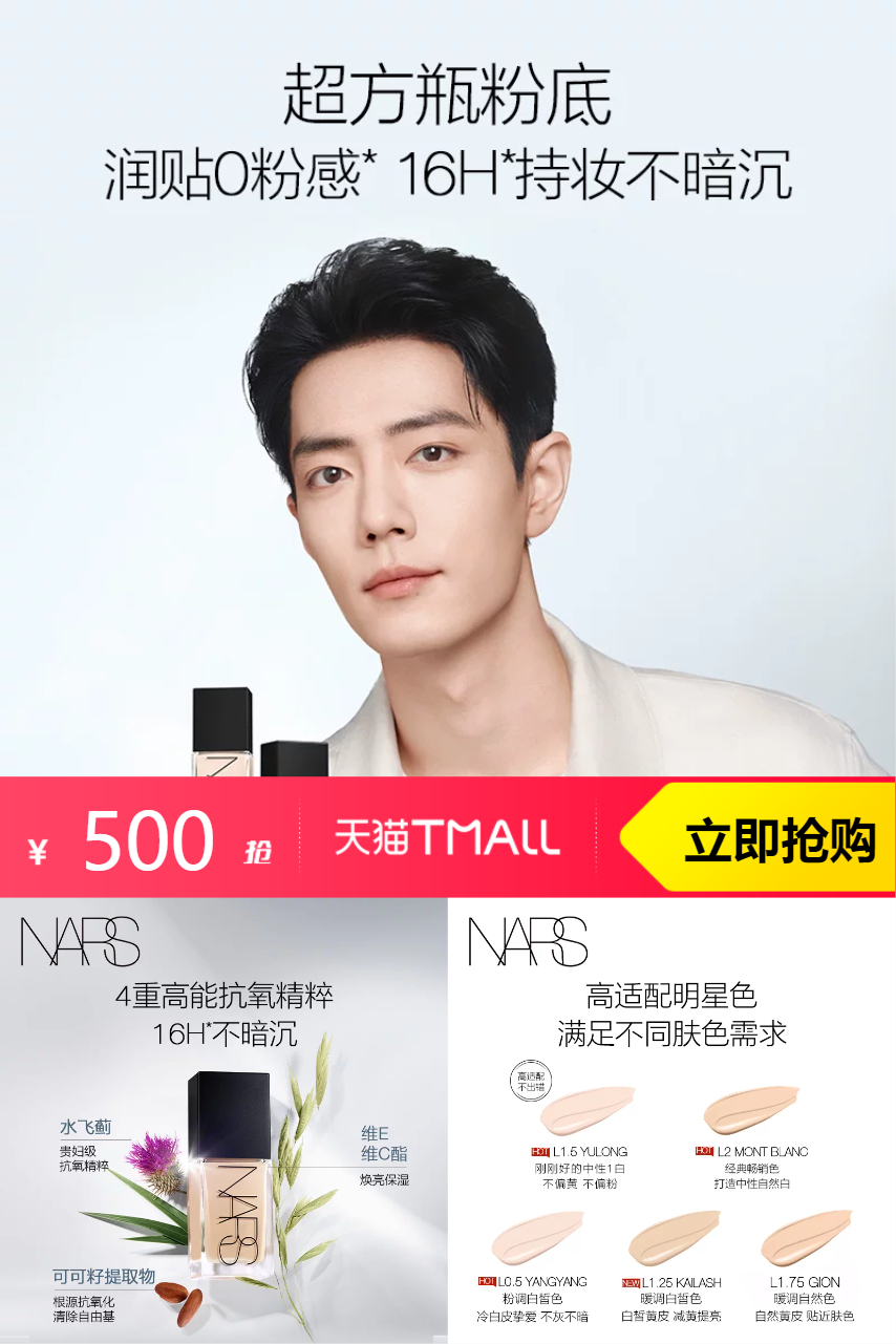 推荐:【赠肖战周边海报】NARS纳斯超方瓶粉底