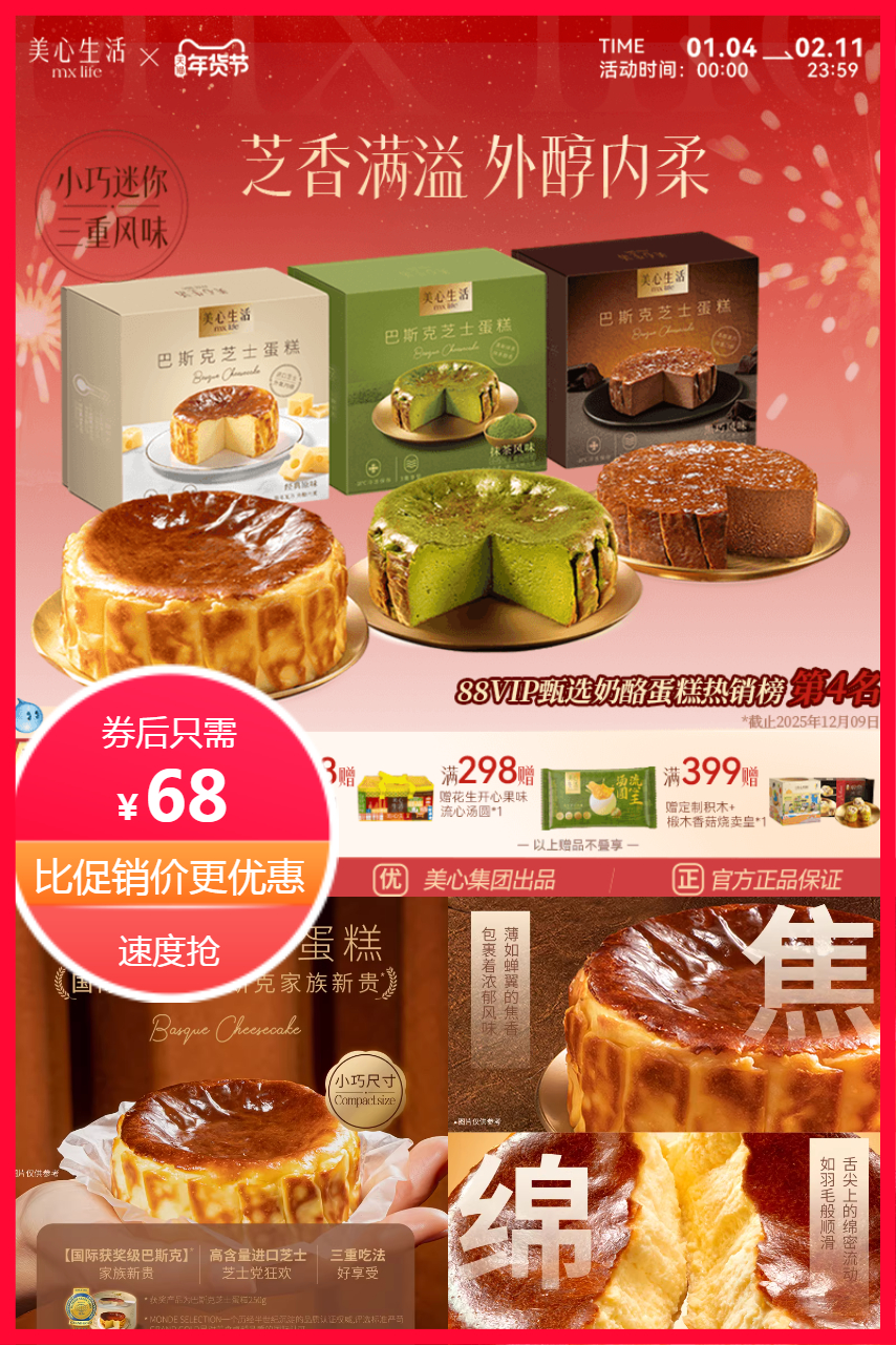 官方立减13+淘金币10.7+限时红包3元~到手54.3元,巴斯克大小真的很适合一人食,好吃的不得了,你的新晋下午茶搭子~