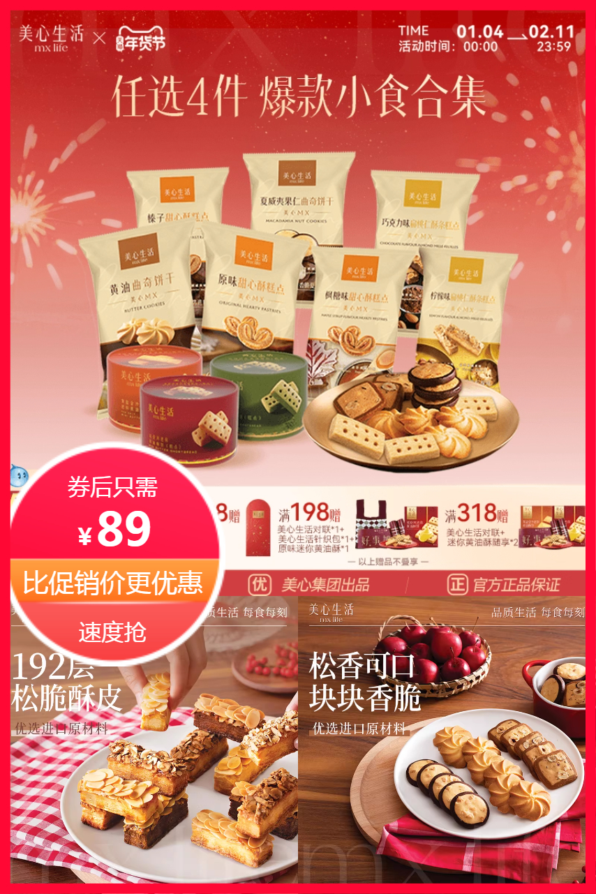⭕拍4件!美心蝴蝶酥坚果曲奇饼干组合