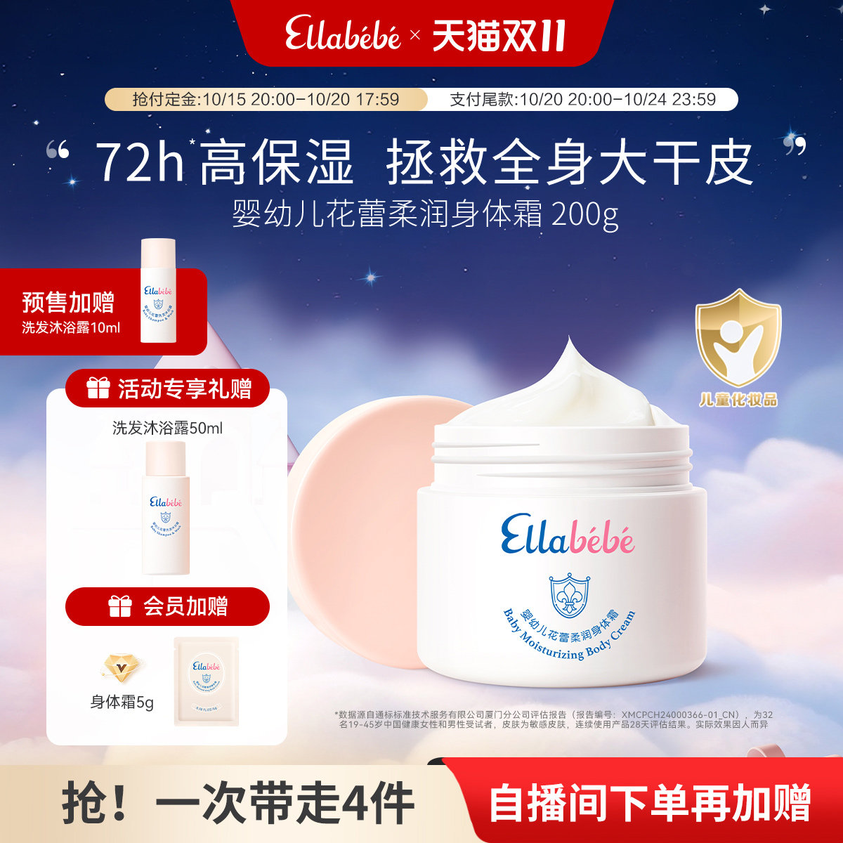 【原价320元—官方立减39—88VIP13.8—店铺优惠5—凑480减32.74=到手价229.46元】四季补水保湿,清爽不油腻,身体护理、秋冬干燥,宝宝皮肤最容易缺水起皮儿了!换季给家里宝贝选好的!预售加赠洗发沐浴10ml,买就送洗发沐浴露50ml+身体霜5g。