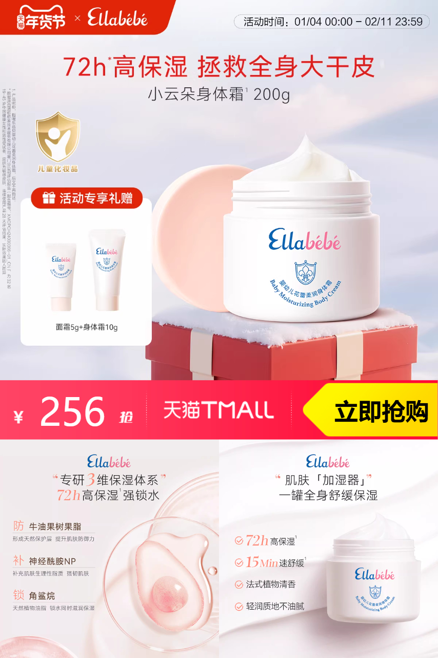 推荐:特价Ellabebe嗳乐蓓贝儿童身体霜